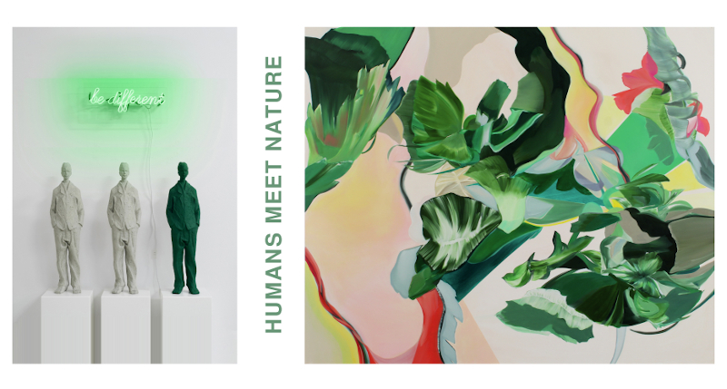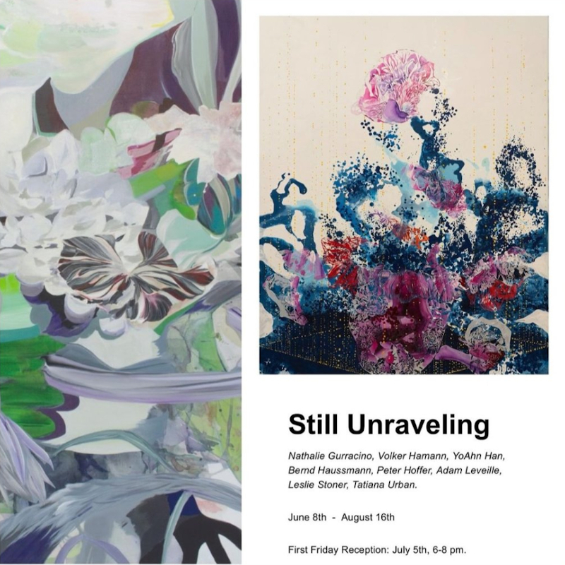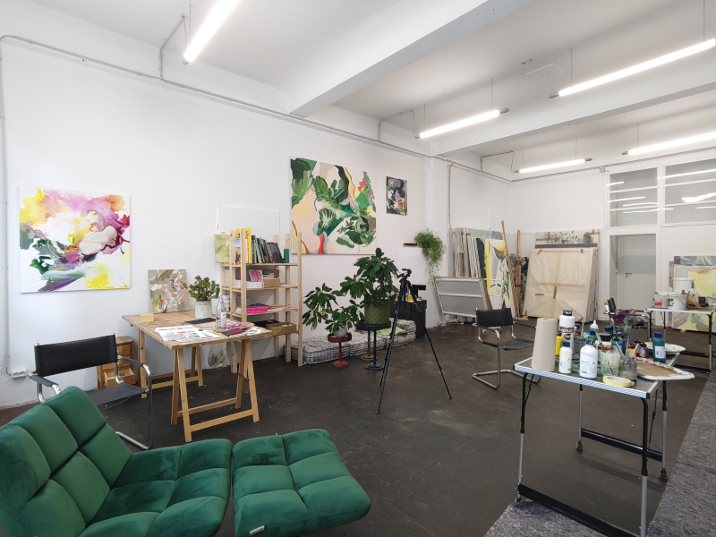 Tatiana Urbans Werke, in denen Pflanzliches und Geometrisches in unifarbenen Hintergründen oder auf rohem Nessel emporstrebt, gleitet und flirrt, wirken wie eine zeitgenössische Interpretation der japanischen Ukiyo-e, Darstellungen einer fließenden Welt. Der teils flächige, teils modellierte Farbauftrag springt leichtfüßig und musikalisch zwischen poppigen Bunttönen und nuancierten Erdschattierungen.