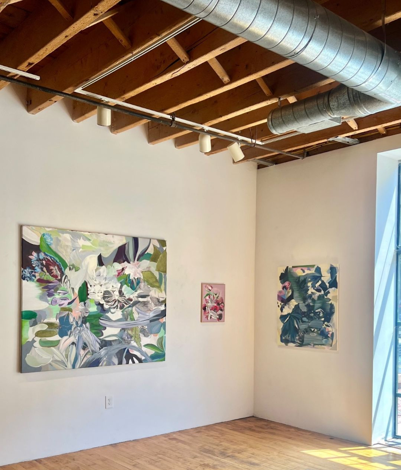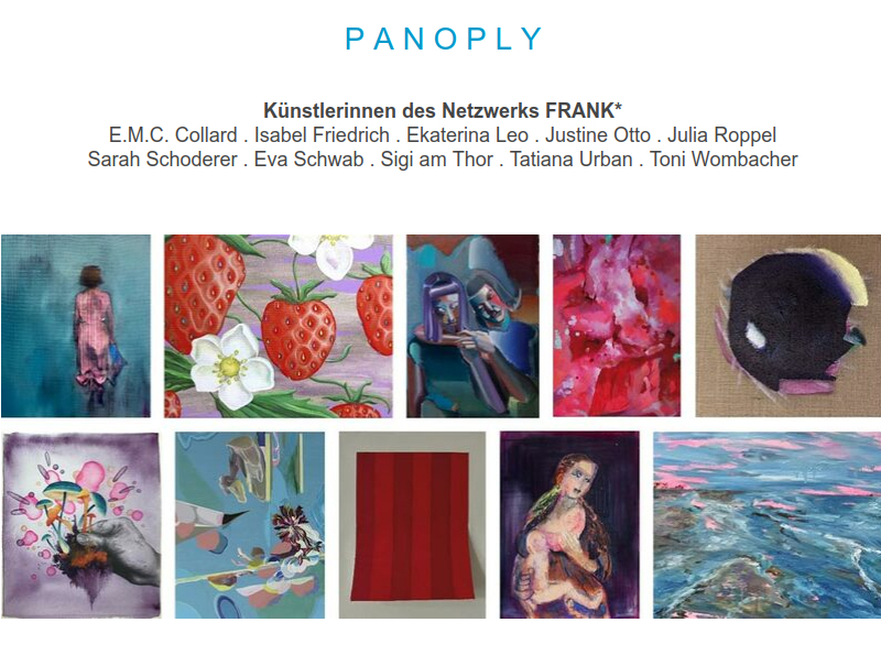 Panoply – aus dem altgriechischen πανοπλία (panoplía), setzt sich zusammen aus πᾶν (pân) „alles“ und ὅπλον (hóplon) „Waffen“. Ursprünglich bezeichnete es die volle Rüstung und Bewaffnung eines Soldaten. Da es einen kompletten Satz verschiedener Komponenten beschreibt, wird das Wort panoply heute auch für eine vollständige oder beeindruckende Sammlung verwendet. In diesem zweiten Sinne bringt die Ausstellung Panoply in der Galerie Maurer das gesamte Malerinnen-Netzwerk FRANK*, gegründet 2022 durch 10 Künstlerinnen mit Bezug zur Stadt Frankfurt am Main, in einer Sommerschau zusammen.