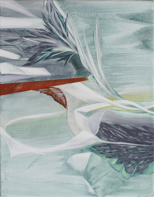 Bonding | Aus silbergrünen Schwaden vervor entfesselt 2025, Acrylic/Canvas, 50x40cm